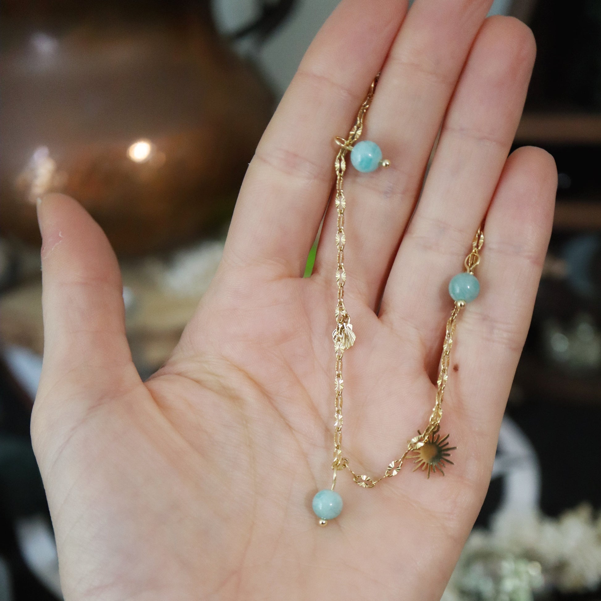À toi de créer ton bracelet personnalisé : un bijou en adéquation avec ton mood et tes vibrations ! Choisis jusqu'à 5 pierres et 5 breloques différentes pour parer cette chaîne fine et stylée des vertus énergétiques qui te conviennent.