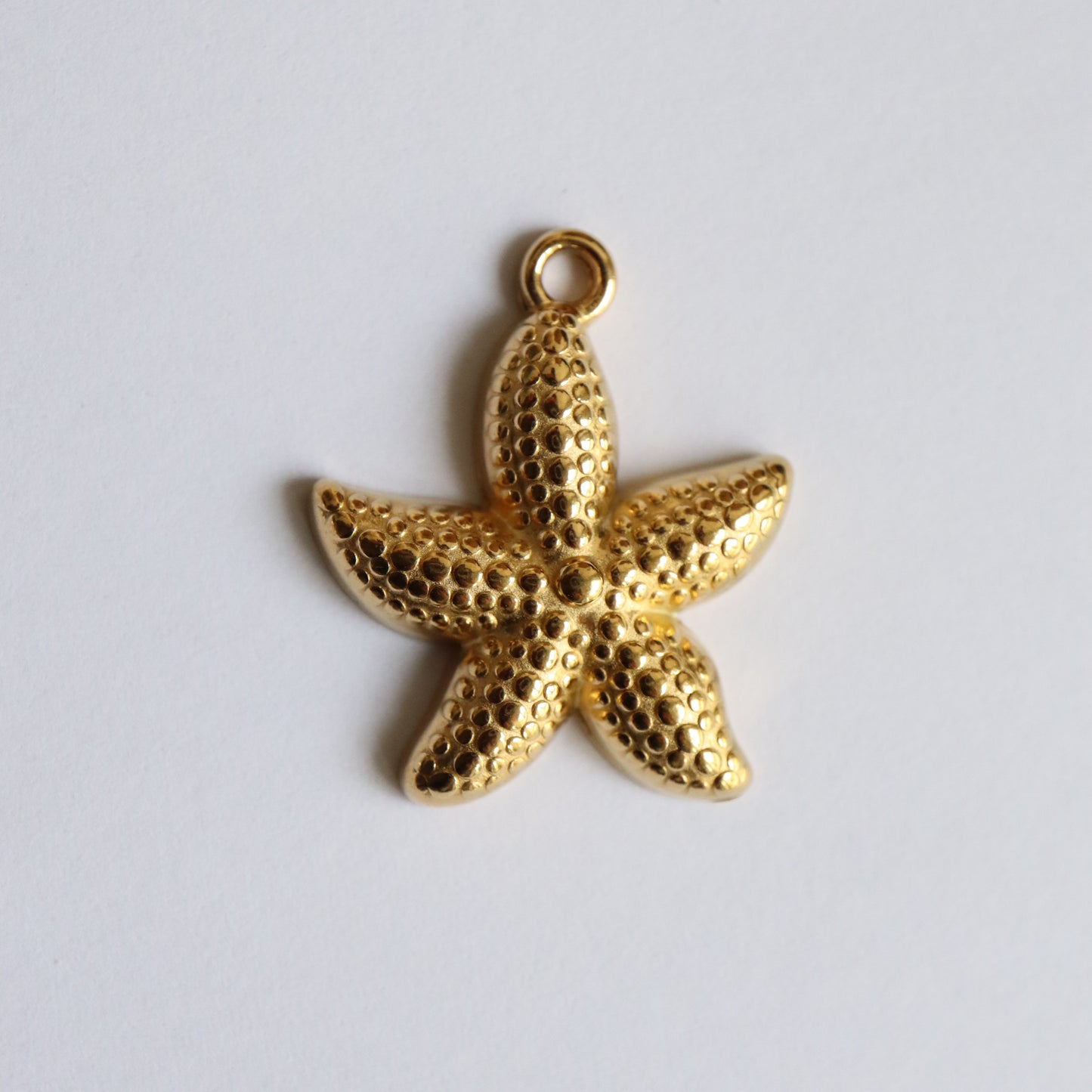 Une breloque étoile de mer en acier inoxydable argenté ou doré pour des bijoux uniques qui sentent bon l'été. Et pour les sorcières dans la salle, sachez que l'étoile de mer est un symbole fort pour vos rituels de régénération ! L'étoile de mer peut aussi soutenir tous vos travaux magiques en lien avec la mer.