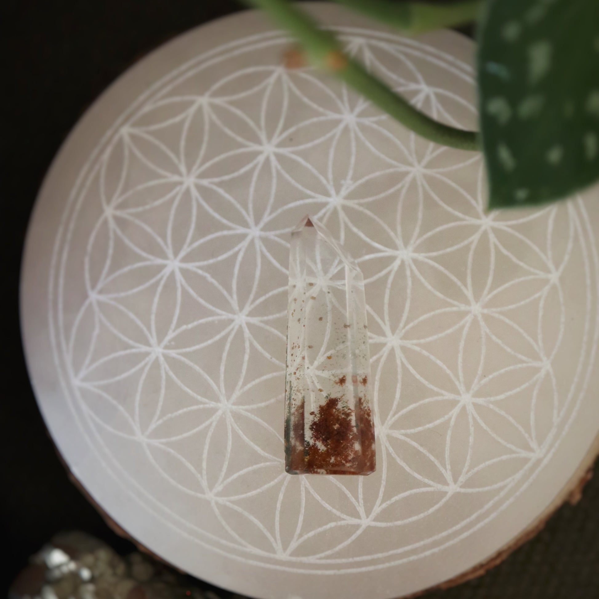Cette pierre présente plusieurs particularités appréciées des amateurs de lithothérapie. Tout d'abord, elle réunit le pouvoir d'amplification du cristal de roche et les vertus de l'hématite, une pierre qu'on utilise en renfort pour les efforts physiques à durée prolongée.