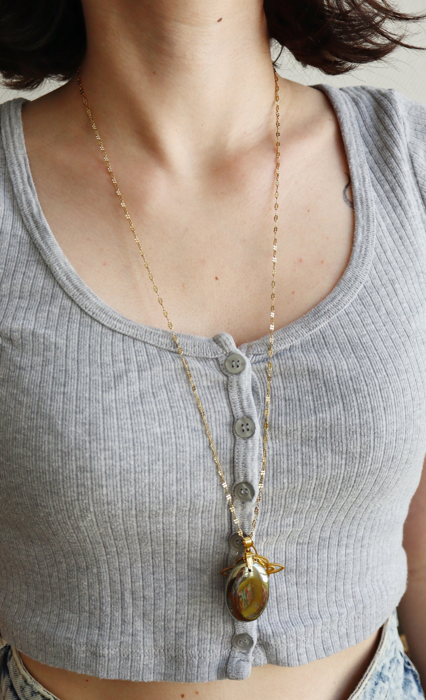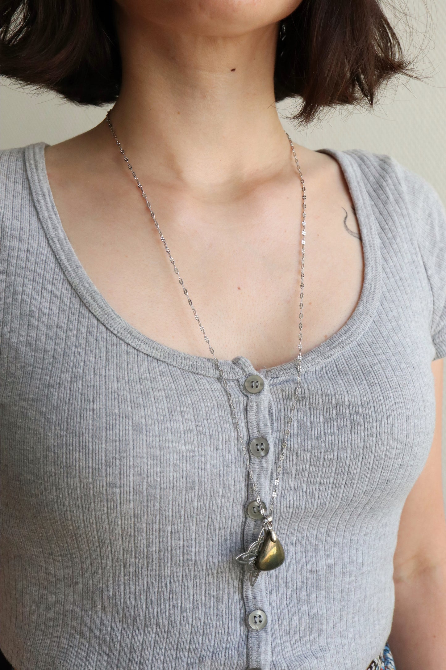- Chaîne et breloque en acier inoxydable hypoallergénique disponibles en doré ou argenté